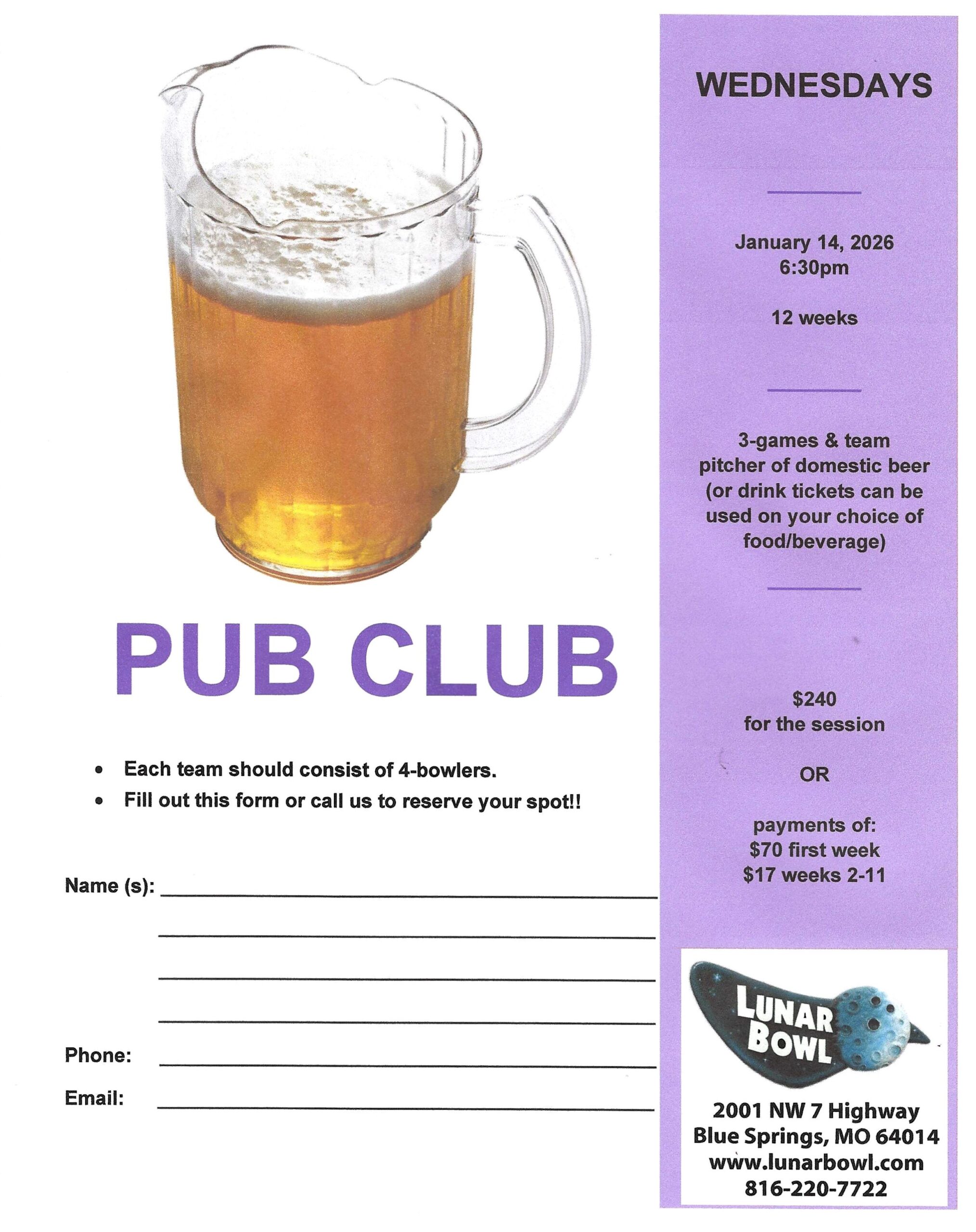 We have teams looking for bowlers on Sunday, Tuesday and Thursday evenings. Reach out to Lunar Bowl or Jamie’s Pro Shop if you would like to join.